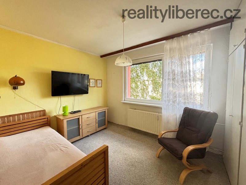 Byt je slunný s hezkým výhledem na Ještěd a zeleně u domu. Bytová jednotka se skládá z obývacího pokoje s kuchyňským koutem, ložnice, chodby a koupelny se sprchou a s WC. V obytných místnostech je lino pokryté kobercem, v koupelně je dlažba. Okna jsou plastová. K bytu patří sklepní kóje.