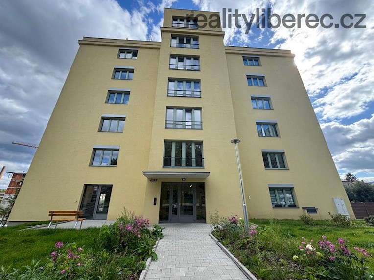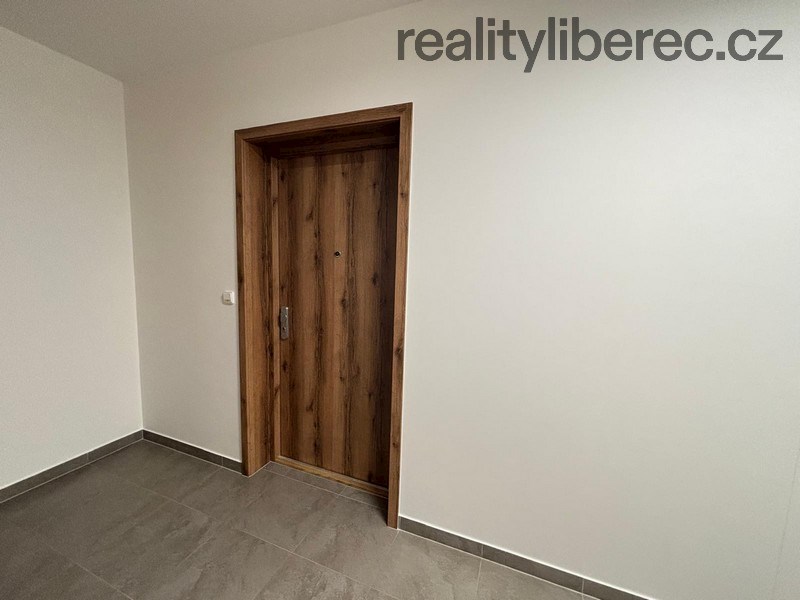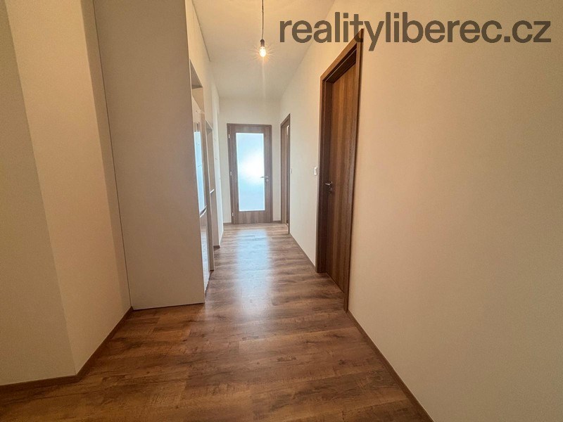 Byt je nový v 5.NP, připraven pro prvního nájemníka. Skládá se z prostorného obývacího pokoje s kuchyňským koutem, vstupem na balkon s nádherným výhledem na Ještěd, dále ze 2 pokojů (z nichž jeden má také přístup na balkon), koupelny s vanou, samostatného WC a chodby. Okno v obývacím pokoji je velkoformátové vybavené venkovní elektrickou žaluzií na dálkové ovládání. V obytných místnostech je plovoucí - vinylová podlaha, v koupelně a WC dlažba.